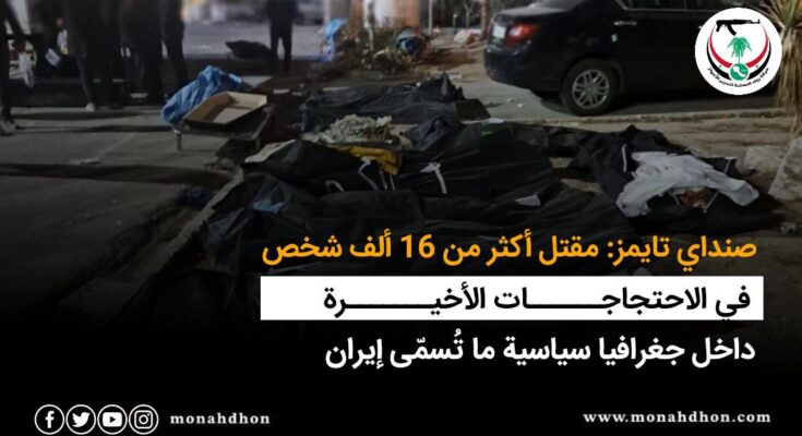 صنداي تايمز: مقتل أكثر من 16 ألف شخص في الاحتجاجات الأخيرة داخل جغرافيا سياسية ما تُسمّى إيران