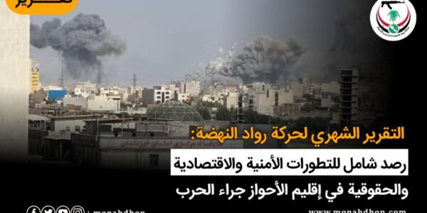 التقرير الشهري لحركة رواد النهضة لتحرير الأحواز: رصد شامل للتطورات الأمنية والاقتصادية والحقوقية في إقليم الأحواز جراء الحرب