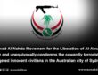The Ruwad Al-Nahda Movement for the Liberation of Al-Ahwaz strongly and unequivocally condemns the cowardly terrorist attack that targeted innocent civilians in the Australian city of Sydney