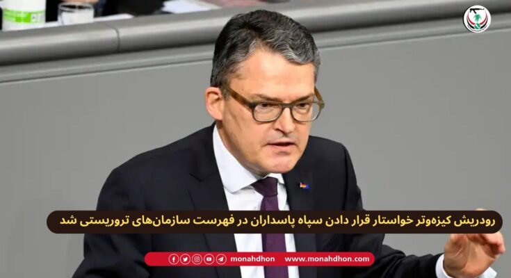 رودریش کیزهوتر، نماینده حزب دموکراتمسیحی آلمان (CDU) در پارلمان ، از دولت آلمان و اتحادیه اروپا خواست تا موضع خود در قبال اعتراضات اخیر در ایران فعالتر کنند و سپاه پاسداران را در فهرست «سازمان تروریستی» قرار دهند.