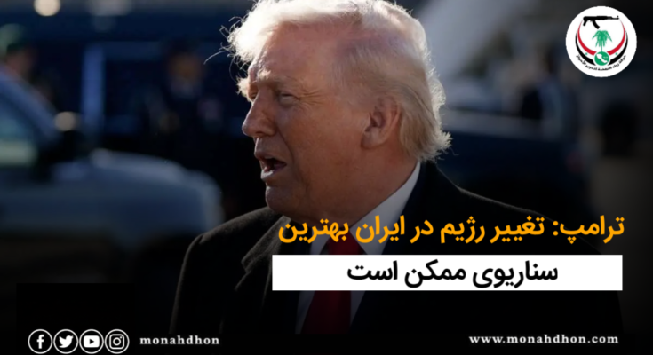 دونالد ترامپ، رئیسجمهور ایالات متحده، در اظهاراتی گفت که تغییر رژیم در ایران «بهترین اتفاقی است که میتواند رخ دهد». او بدون اشاره به اینکه چه فرد یا جریانی باید قدرت را در ایران در دست بگیرد، گفت «افرادی هستند».